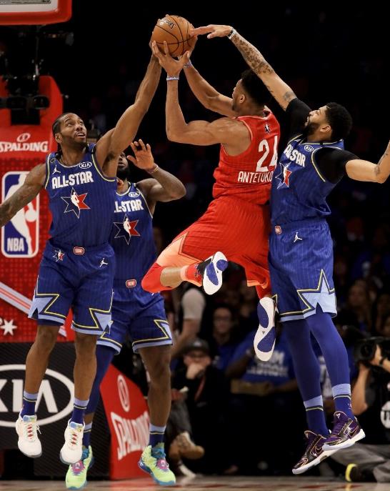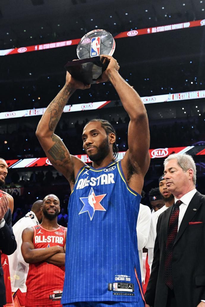 全明星正赛改制,全明星MVP奖杯被命名为科比-布莱恩特奖杯,这些都显示出这届全明星的与众不同,谁能获得这个MVP就显得至关重要。字母哥、詹姆斯两人最有希望,但其他球员也有可能获得这个荣誉。伦纳德一直对总冠军奖杯之外的事情不感兴趣,但他今天的进攻状态和投篮手感都让他成为全场最耀眼的明星,多少有些抢戏的嫌疑。