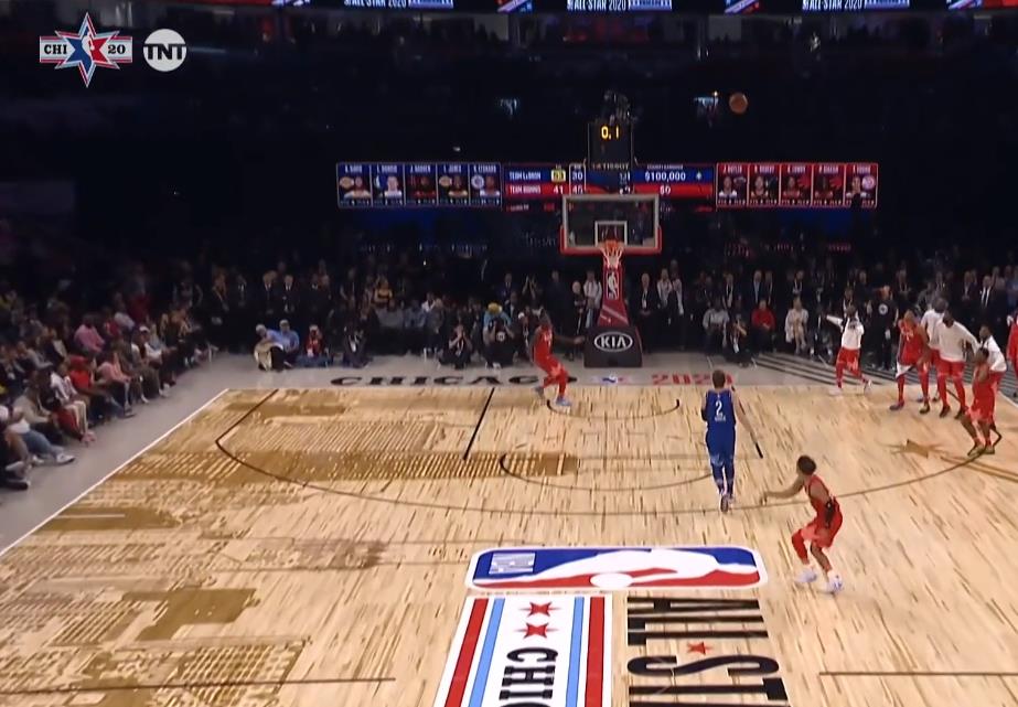 伦纳德今天的得分方式就是三分球,首节比赛完全就是詹姆斯战队的空接表演秀,詹姆斯、保罗、西蒙斯、东契奇、约基奇,詹姆斯战队有太多能传球。在各种球星空接暴扣的背景下,伦纳德单节命中4记三分球得到12分,全队最高。半场比赛结束时,伦纳德一共投进了7个三分球,半场得到25分4篮板2助攻。