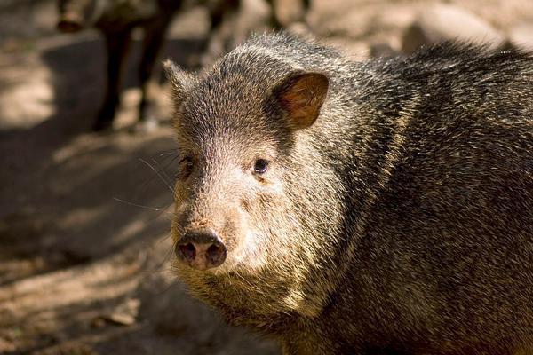野猪的毛色变化很大,常以黑色为主,混杂锈色、褐色、灰白色。淡色者呈灰褐色,带些锗色。鬃毛较明显,从头顶开始,沿颈背直至背脊中段,或达臀部一带。四肢、尾尖黑色,尾细,长度适中,被毛稀少,尾尖处扁平,两侧毛密。