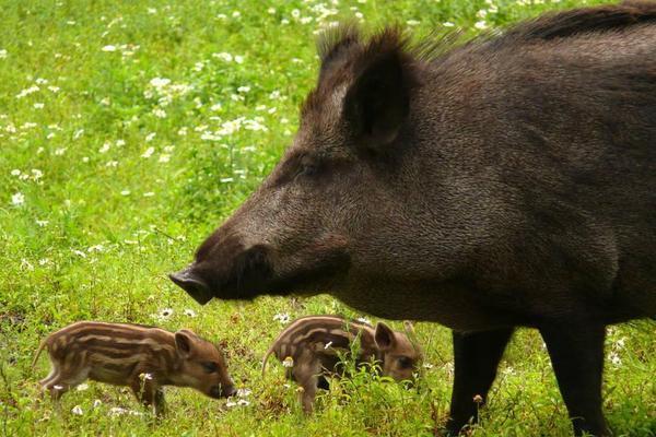 野猪又称山猪,猪属动物。中国的野猪分布主要在东北三省、云贵地区、福建、广东地区。栖息于山地、丘陵、荒漠、森林、草地和林丛间。适应性极强。野猪肉用价值高,坚韧粗糙的野猪肉有取代肥瘦相间的家猪肉的趋势。野猪一般年可产仔2~2.5胎,每胎8~16头,配种时间以6~7月龄、体重 60~70千克为宜。养野猪已成为中小投资者的首选项目,先期投入的养殖户普遍产生了很好的经济效益,年收入在几十万到几百万者大有人在。