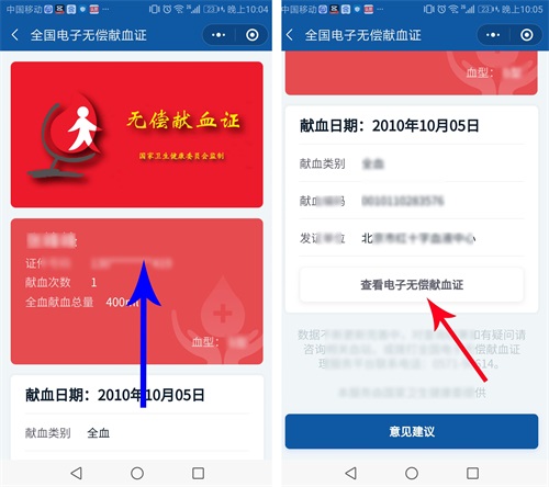 在手机上,通过微信打开国务院客户端小程序,然后打开全国电子无偿献血证界面,点击“查看电子无偿献血证”后,即可查看包括献血地点、献血日期在内的所有信息记录。下面,来看具体查询方法。