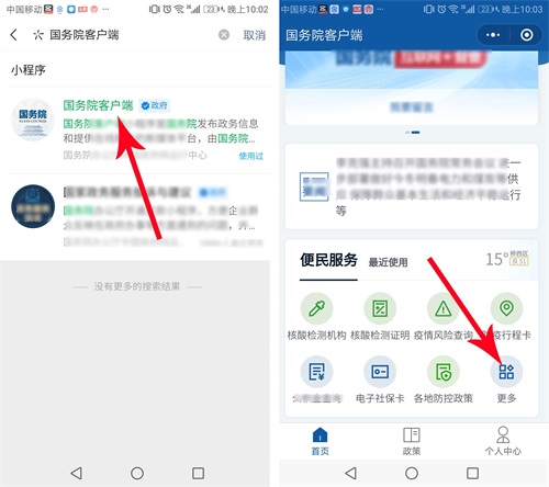 3、打开搜索结果页面点击“国务院客户端”,然后点击“更多”。