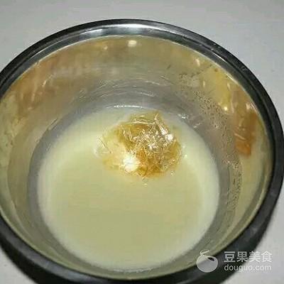 5、糖化了再加入泡软的鱼胶片拌均匀(可用鱼胶粉代替)