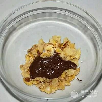 1、榛子酱和玉米片(可可米)一起拌均匀