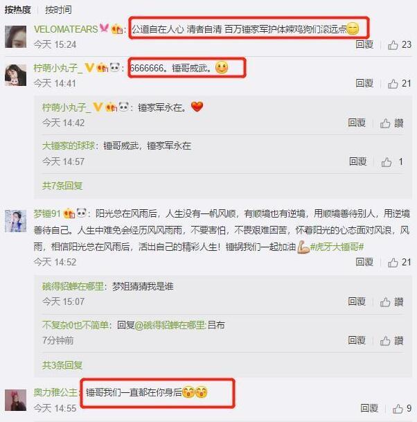 根据这些足以证明此次对于大锤哥请演员事件,根本是一些人在诬陷大锤哥.大锤哥的粉碎也纷纷选择在微博留下了自己的支持.