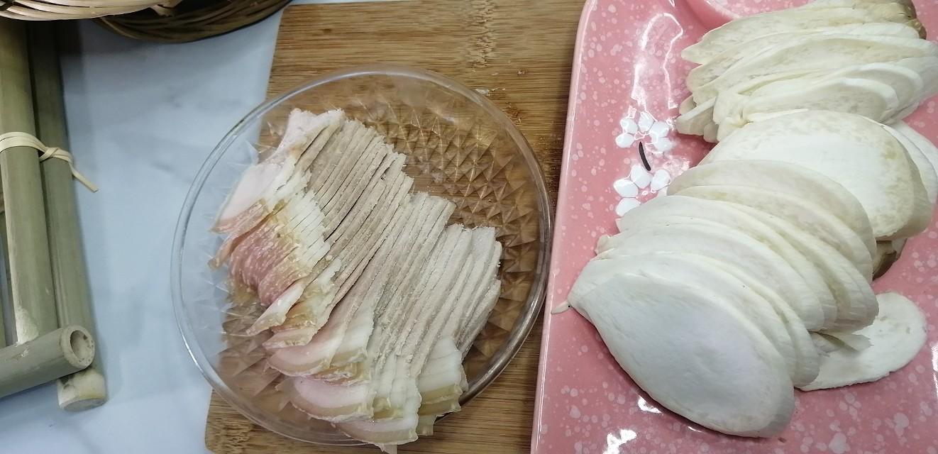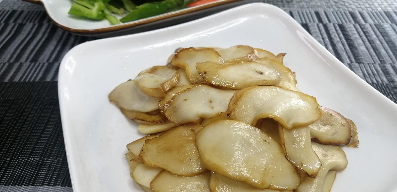 杏鲍菇逆着纤维纹路,切大点的斜刀片,因为熟后会收缩很多。这样切出的杏鲍菇片,成菜后入口筋而不硬,鲜嫩入味,还易消化。