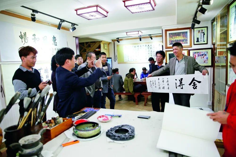 丽江古城始建于南宋末年,依山傍水,经历代不断复扩建形成今天较大规模的纳西族特色建筑群,随着古城文物价值不断升级,这里也成了海内外游客的向往和旅游之地。和志刚是较早一批入驻古城的文化经营者,古城的管理部门很清楚,像这样的古城不能只卖吃喝,必须有代表性的文化元素支撑,东巴造纸、纳西古乐必不可少,而土生土长的口书书法家和志刚也是一个很好的元素,和志刚身上还有着“中国十大杰出青年” “全国五一劳动奖章”“全国自强模范”等一大堆光环,于是,他被邀请进驻,成了古城文化形象的一个亮点。十多年下来,古城里的“和志刚书斋”知名度越来越高,成了游客的一个重要的打卡地。有人是去看这位无臂书法家是如何写字的,有人慕名前去目睹一下励志人物的风采,也有人就是冲着买一幅他的书法作品去的,这其中有人自带书写内容,这样既可以观看和志刚的创作过程,也顺便与他和作品一起合个影。