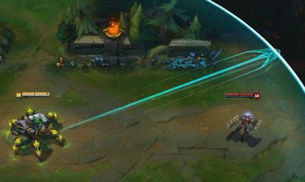 对线上厄加特的射程虽然短,但是仍然算个远程英雄,这点在上单对线上非常有帮助。厄加特的主要输出是被动和W技能,这里注意被动是对应方向的腿,所以你的一个方向的腿的被动打完,可以走位换个方向。被动很像男枪的平A,而且具有百分比伤害。线上一定要利用射程平A对面。