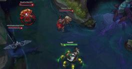 6级之前都可以这样耗血,依靠射程平A和W技能的输出。到了6级,如果对面血线在一半以内,可以之间闪现先手接大招,厄加特的一套连招输出很高,足够将血线打到25%以下,之后大招斩杀,只要大招的第一段命中,到达斩杀线之后任何技能都没用。