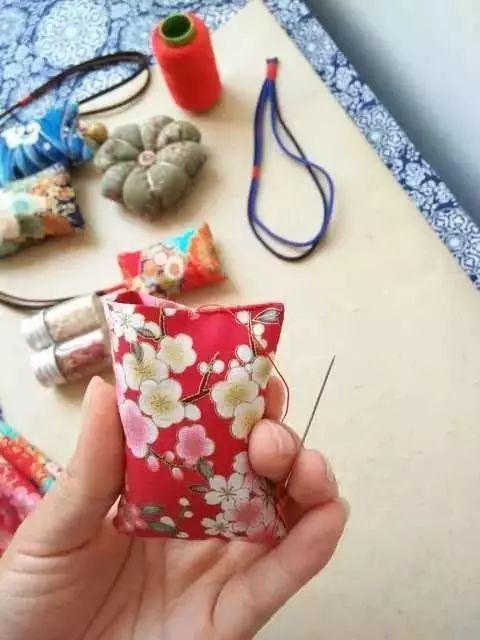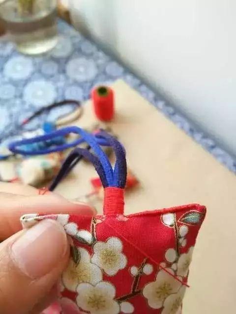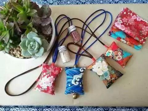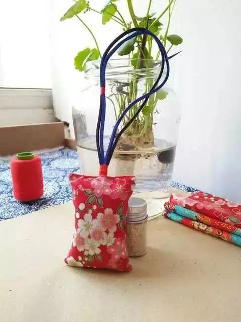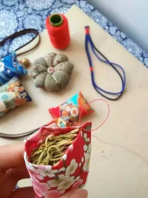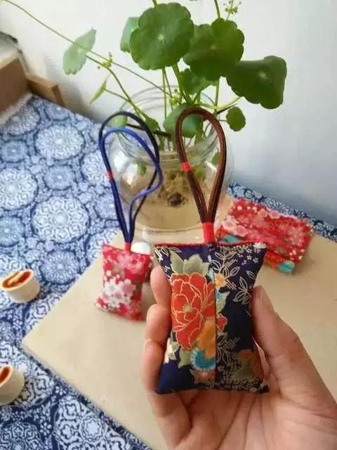 制作思路:缝制香囊布袋——配装香料——封口缝挂绳——完工