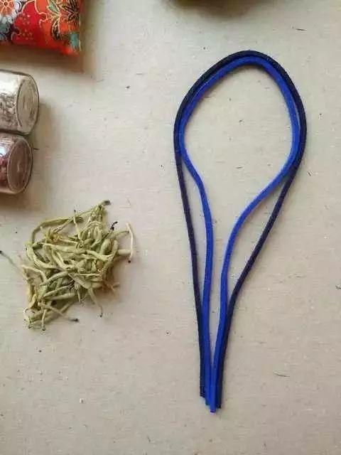 5.两根不同色绳子缠到一起。(绳子长短颜色和线的颜色根据布色确定,可自定义)