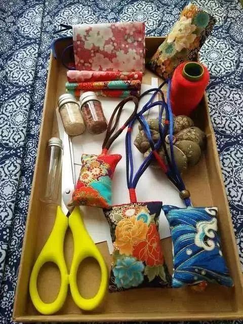 所需材料:布头,针线,香料,剪刀,尺子,笔等。