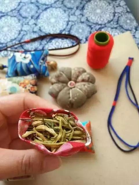 中药香囊源自中医里的“衣冠疗法”,民间曾有“戴个香草袋,不怕五虫害”之说。佩戴香囊,虽是一种民俗,但也是一种预防瘟疫的方法。香囊常用的是具有芳香开窍的中草药,比如丁香、沉香、艾叶、佩兰、肉桂、益智仁、小茴香、菖蒲石、苍术、薄荷、藿香等,有清香、驱虫、避瘟、防病的功能
