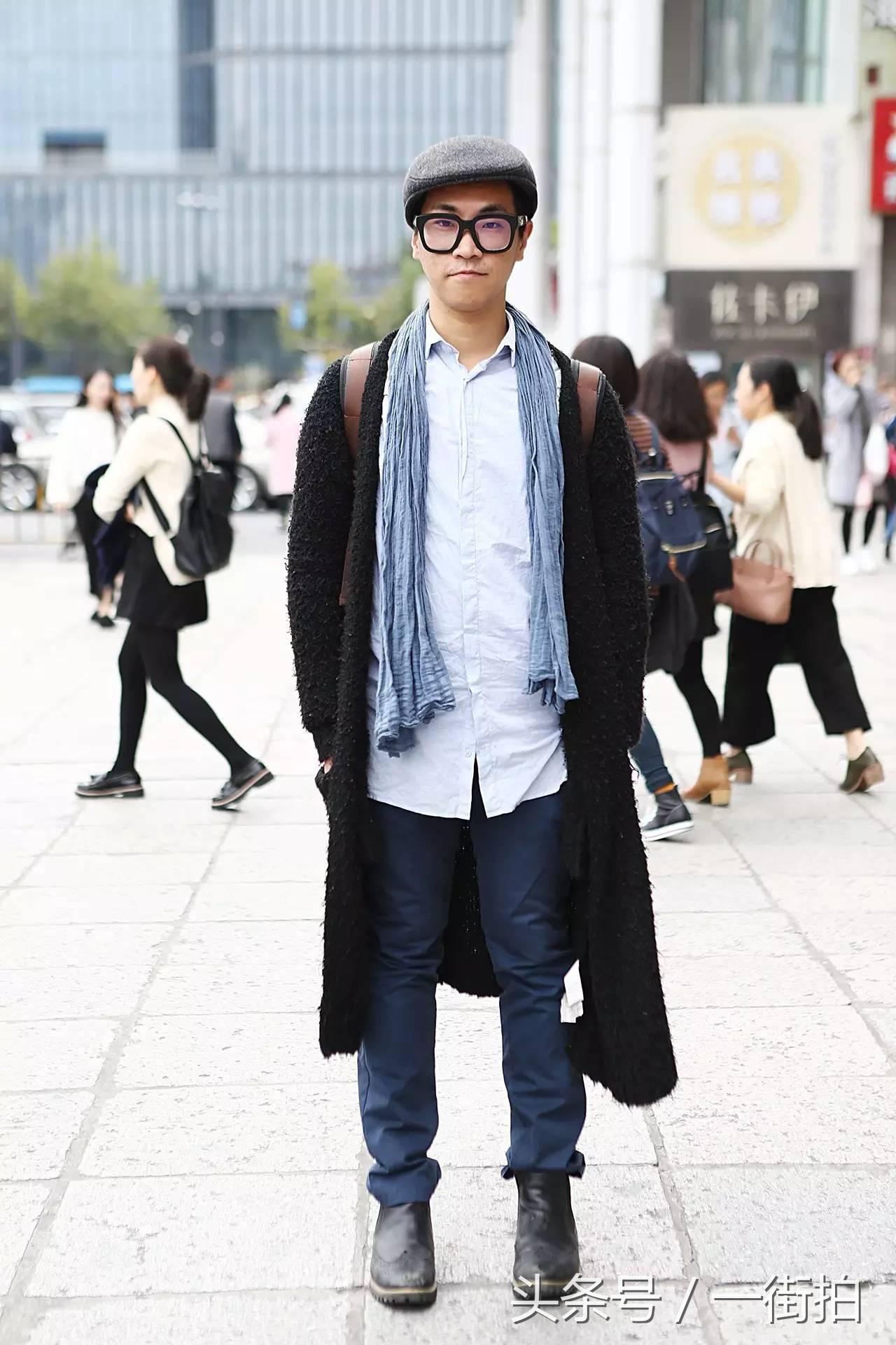 黑色大衣搭配压发帽,配上一副眼镜和一条围巾,看上去文艺又有味道