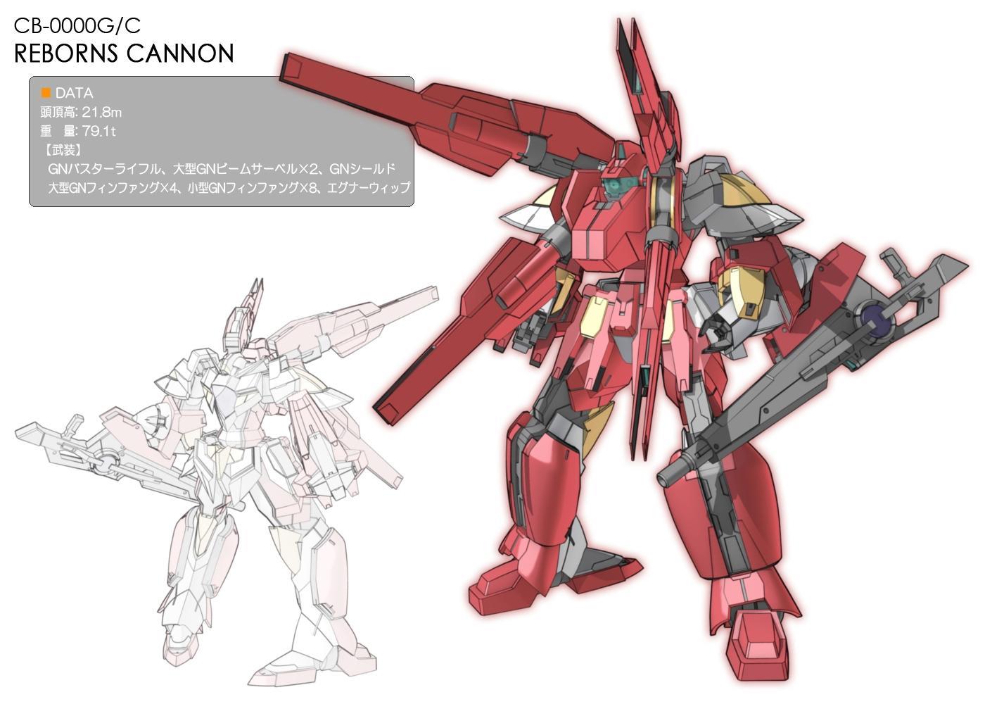 再生高达的性能和GNR-010 00 Raiser非常接近,它可以根据不同的战场形势灵活的快速切换两种形态并进行压制,其中再生加农模式专门侧重于远程重火力打击,这一模式使用了GN-005 德天使高达的战斗资料,并将GNX-607T/BW 厄运式Ⅱ炮击战型的感应器作为头部内置感应器。加农模式下再生可以使用包括大型GN飞翼獠牙,GN高能粒子步枪和带线电磁爪这些武器,必要时候还可以一起同时发射。而在脖子附近还有和高达模式共用的光束军刀。但是此模式机动性有限。