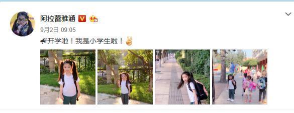 如今已经三年过去了,当初上幼儿园的小姑娘也已经成为一年级的小学生,9月2日她还通过微博晒出自己的一组上学照片。