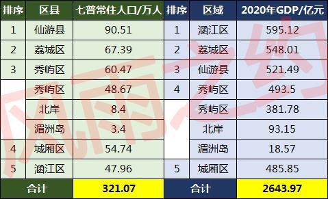 与第六次人口普查相比,莆田5个区县的常住人口均实现了正增长,其中荔城区、城厢区人口增量均超过10万人,仙游县、秀屿区人口增量介于3—10万人,涵江区人口增量低于1万人。对于莆田各区县的人口分布,你如何看待?
