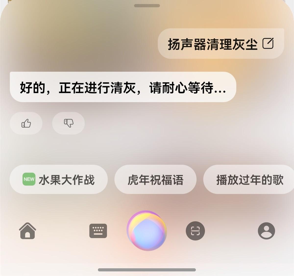 打开语音助手后,对它说一声“下个雪”,就能看到一个雪人和满天雪花,是不是很神奇?