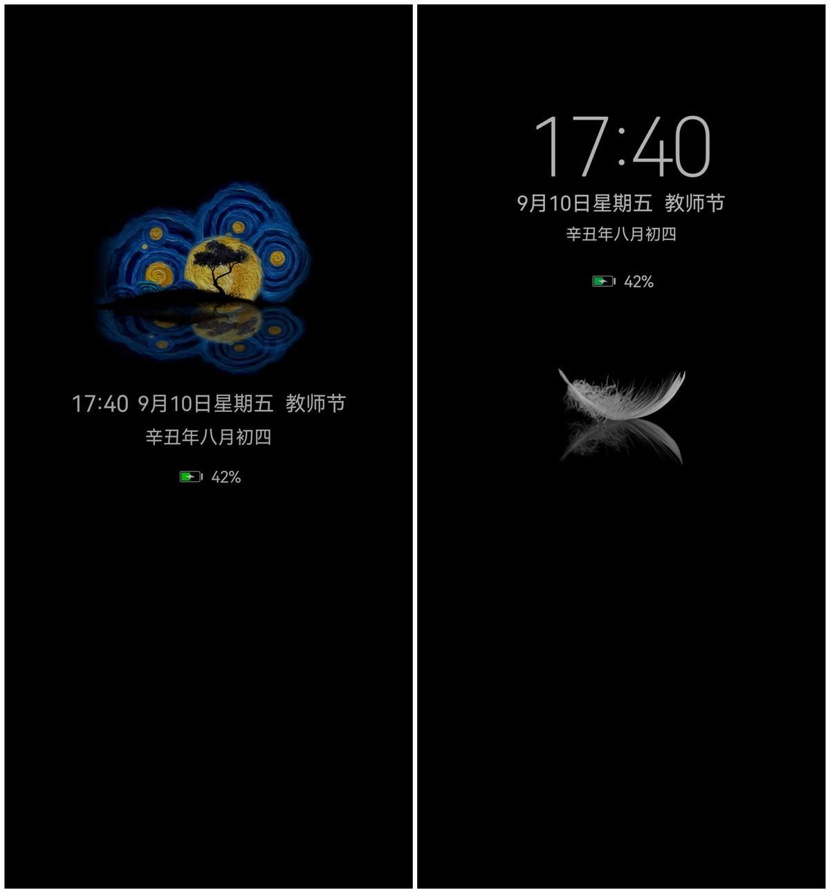 华为手机在熄屏时,除了显示全屏时间和日期,还可以设置喜欢的壁纸和图案,自带的样式很丰富,也可以按照自己的喜好选择或上传图片。
