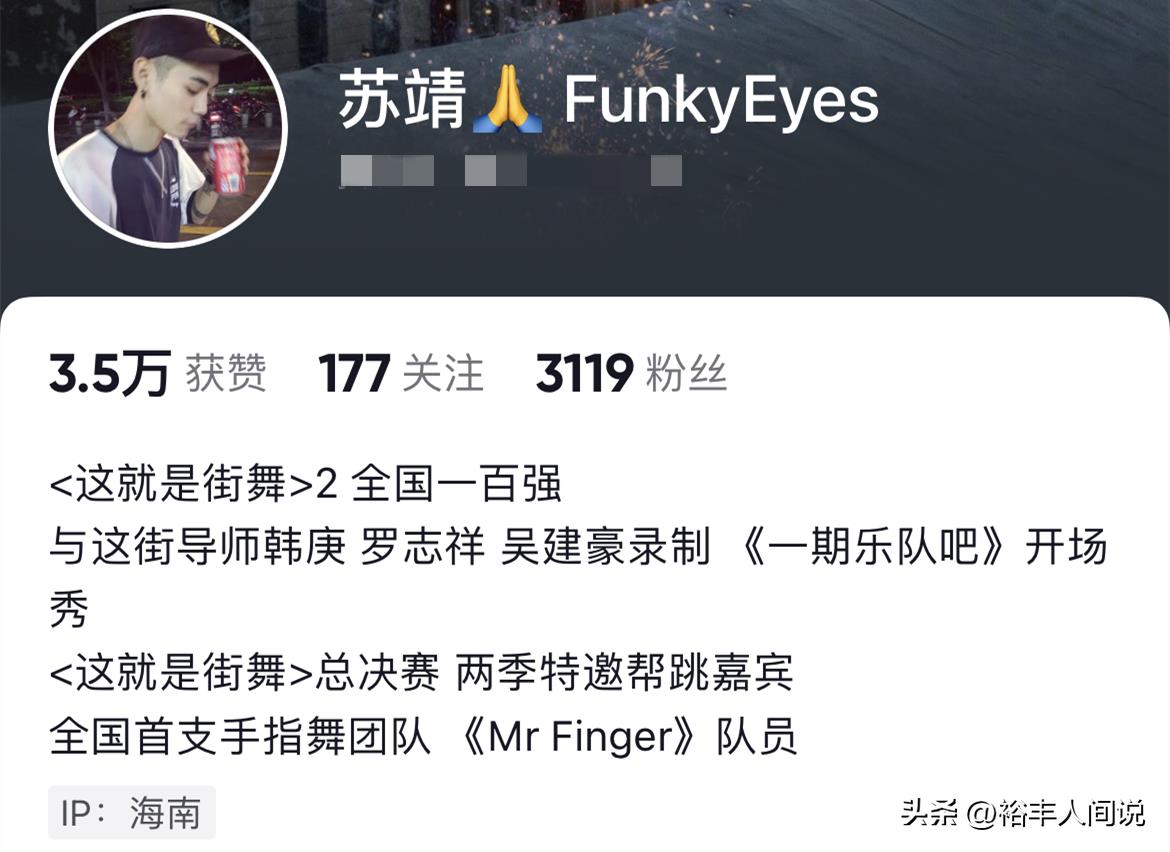 从其晒出的朋友圈截图中不难发现,苏靖本人非常有才,在街舞圈也非常出名,从14岁开始接触一直到32岁,18年的时光,他用努力和天赋打造了属于自己的领域,而且还是综艺节目《这就是街舞》第二季的全国一百强,由此可见其实力多么雄厚。