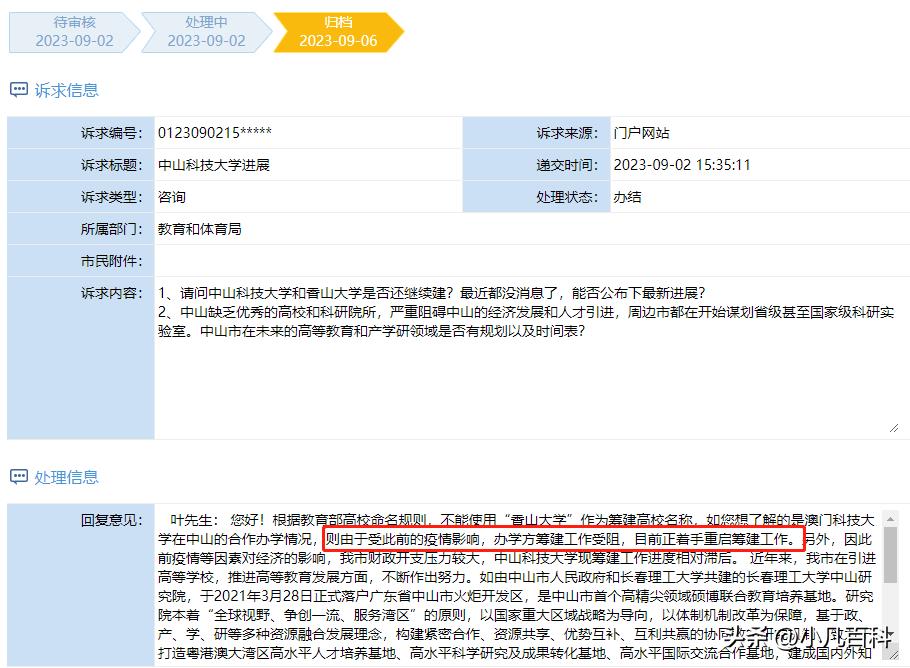 日前,有网友在市长信箱留言,咨询中山科技大学以及香山大学筹建进展以及中山市在未来的高等教育和产学研领域中的规划!