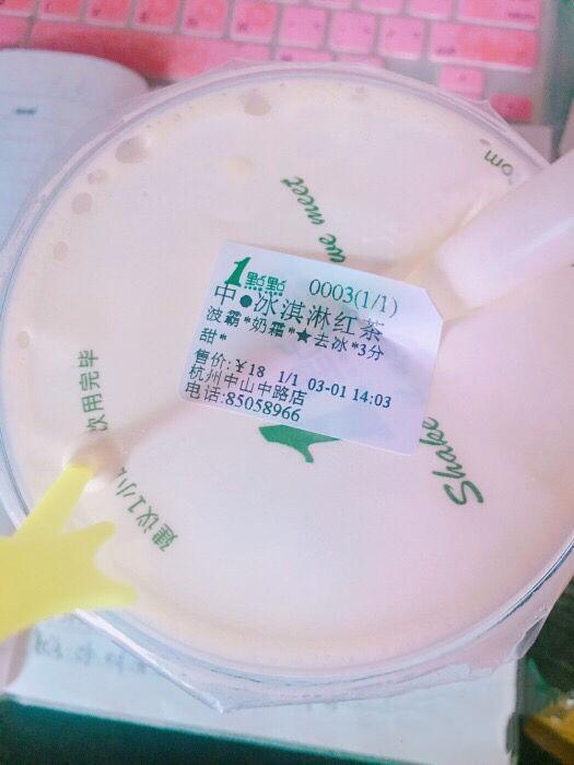 【红茶玛奇朵+冰淇淋+波霸】3-5分甜去冰 特别适合夏天的饮品,红茶和冰淇淋和融合的感觉很棒的,等冰淇淋融化了搅拌均匀口味更棒!