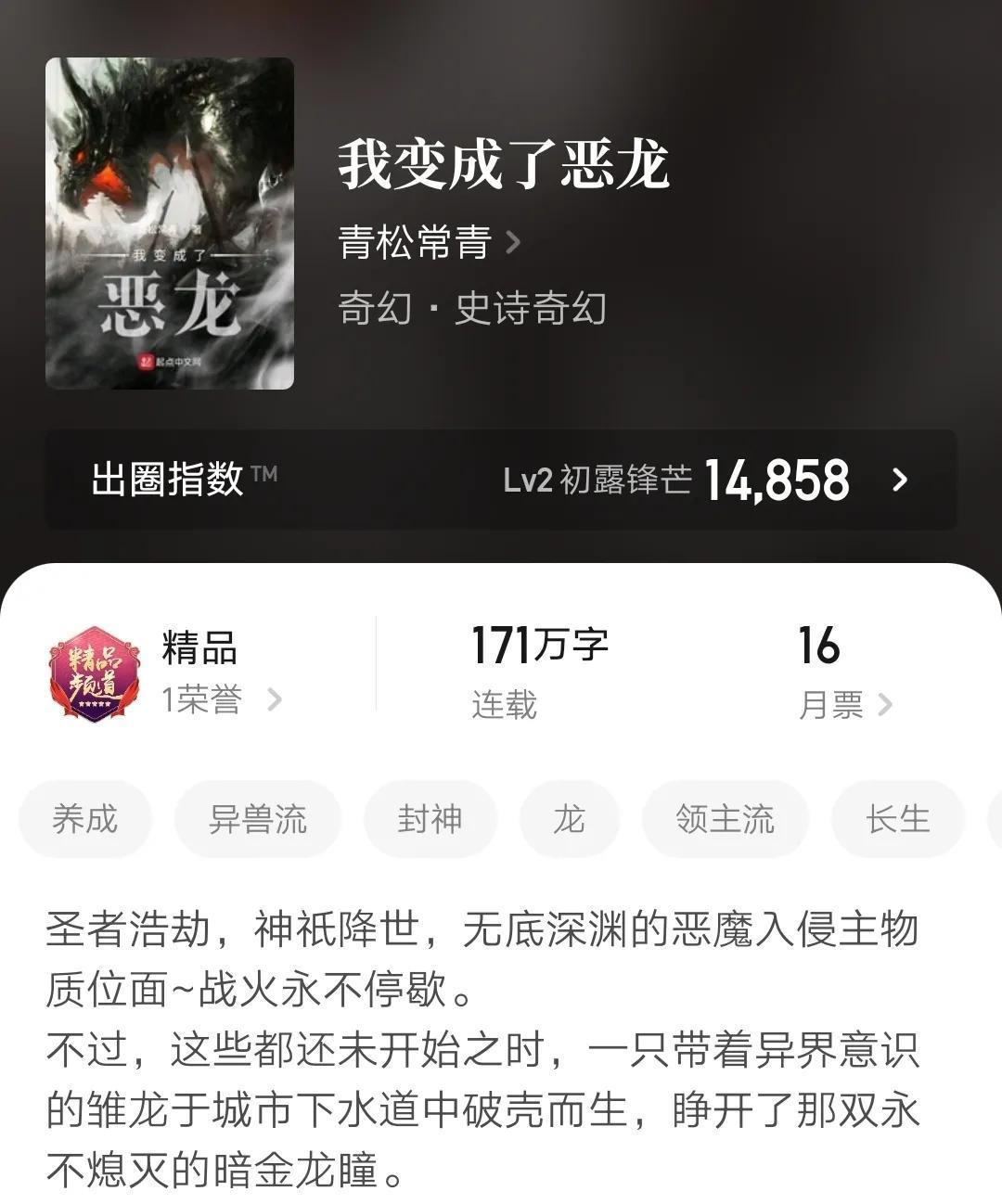 连载中异兽流精品小说,目前来看觉得还可以,西幻色彩,dnd世界观,有完整的游戏背景设计打底,不了解游戏的也能看。