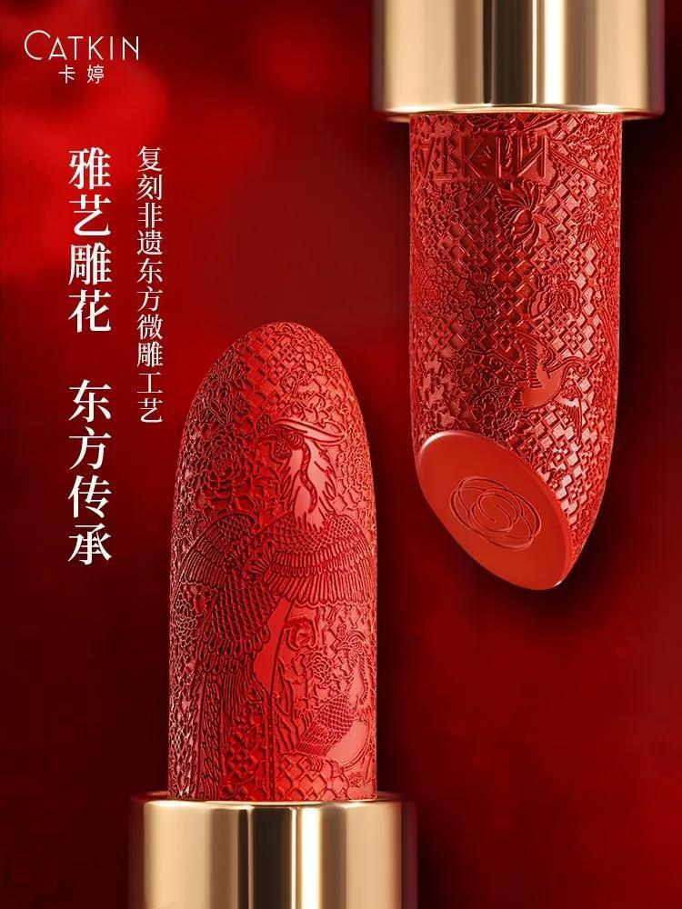 口红外观是精美的中国风图案,经典的红色喜庆十足