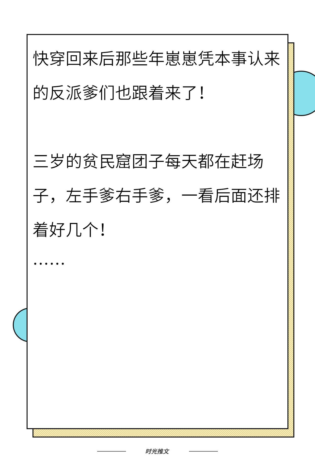 今天给大家推荐的6本女主都才几岁半的文,基本上都温馨的养娃日常,言情的部分可能不多。喜欢的那就往下看吧。