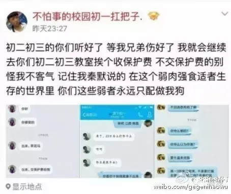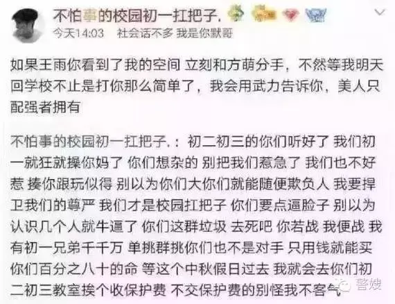 2.为了制霸“明德中学”,疑似在微信朋友圈发了一段收保护费的霸气文字。