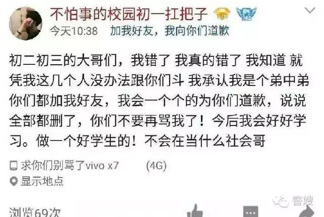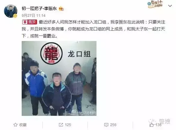 《警嫂》(微信ID:jingsaozi)前不久才讲了未成年的问题,近日就看到一位堪比叶良辰的新晋未成年网红——"初一扛把子李振东"。这是一个很招乐的新闻,大家坐稳了!