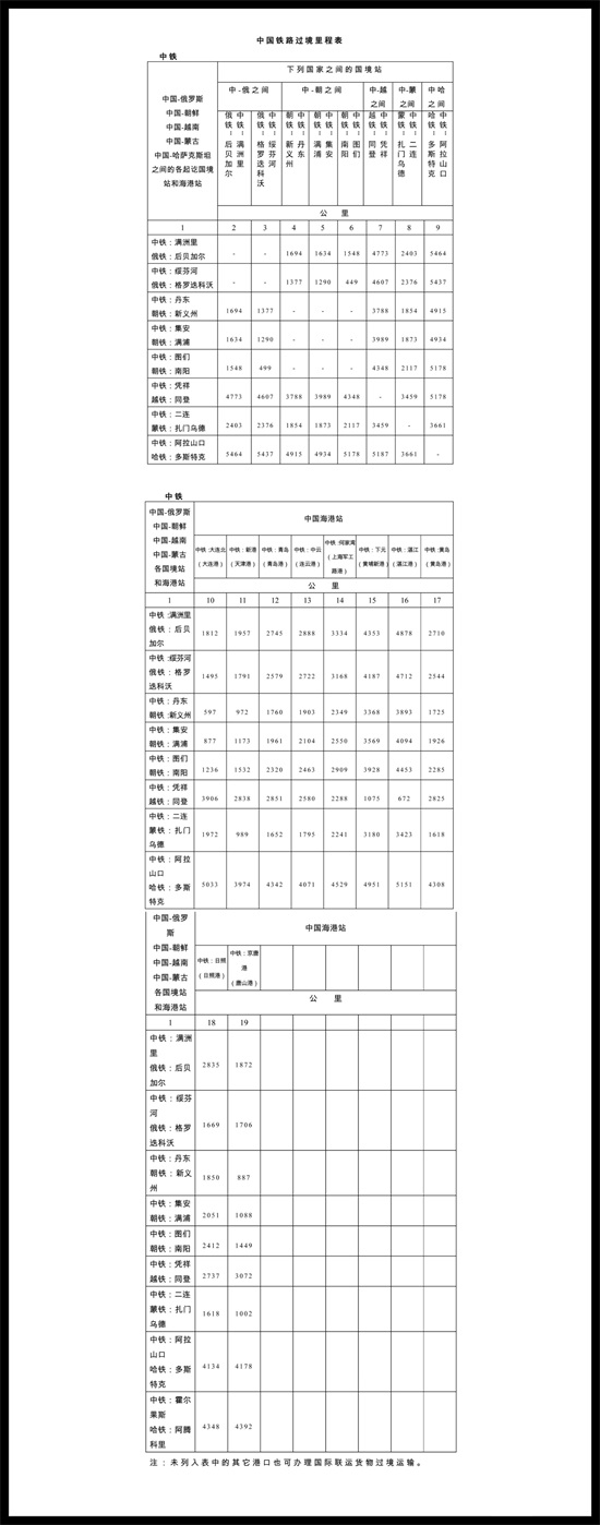 中铁:满洲里 俄铁:后贝加尔、中铁:绥芬河 俄铁:格罗迭科沃、