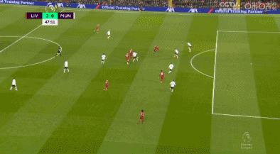 第88分钟,萨拉赫在禁区前送直塞,菲尔米诺停球稍有不稳,稍作调整,转身直接射门,利物浦7-0领先曼联。