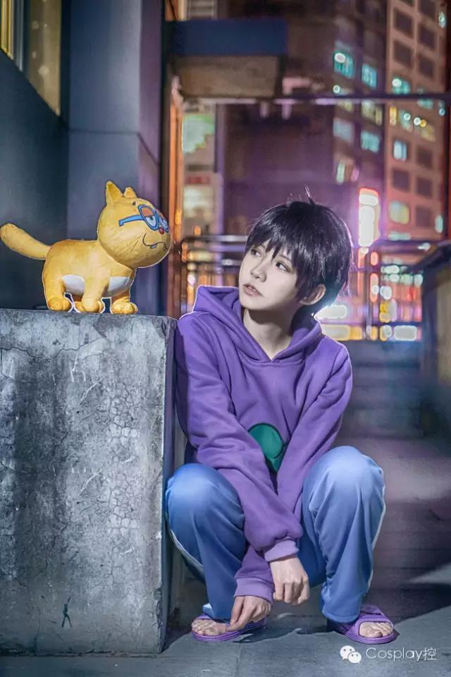 :在赤冢不二夫的漫画作品《阿松》中的松野一松,死鱼眼,眼皮半睁,头发蓬乱,驼背,声音音调很低。有着我行我素以及讽刺意味明显的举动。身上散发着一种生来就死气沉沉的阴郁性格,沉默寡言,不会主动发言。但在Coser的阿松哪里有上文提到的那些,分明就是一个可爱呆萌帅气的男生萌,迷倒控酱了知道吗?哦~控酱摔倒了,要一松哥哥亲亲才能起来0.0