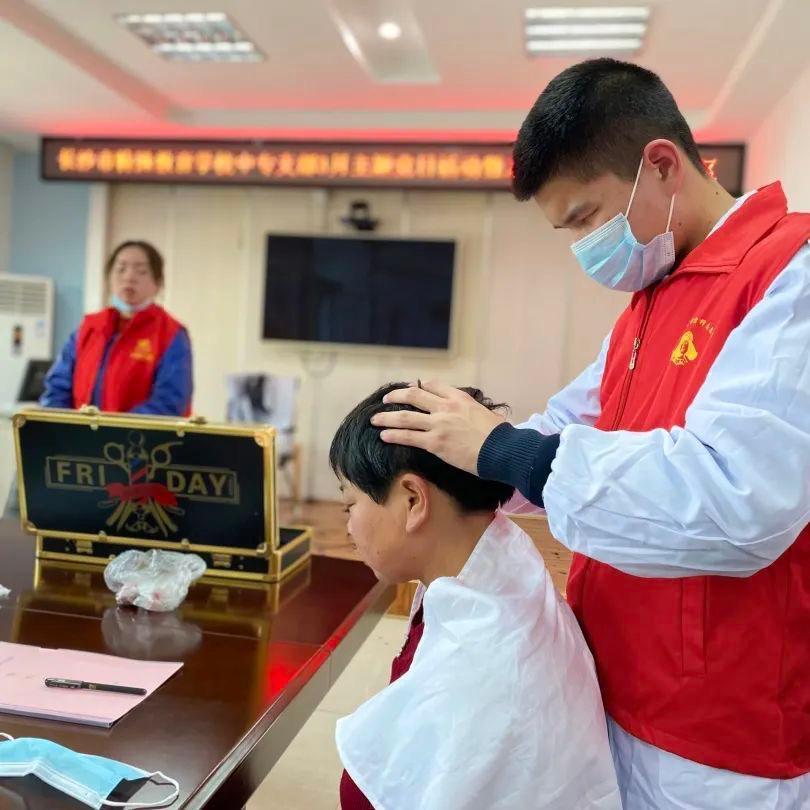 3月2日上午,长沙市特殊教育学校中专支部依托学校“翼之梦”党员志愿服务队,在箭弓山社区服务中心开展支部党员进社区志愿服务活动。视障按摩专业的学生,为社区环卫工人及居民进行保健按摩。按摩专业党员教师为有需求的市民进行免费血压测量。服装专业教师为社区居民缝裤脚边、熨烫衣物。在党员教师的带领下,智力发展障碍47班同学手持扫帚、抹布等工具走进社区,将社区的阅览室、活动室打扫干净。这些都是“翼之梦”志愿活动中的小小缩影,多年来,“翼之梦”积极参与各类公益活动,将孩子们的乐观自信传递给社会更多的人。