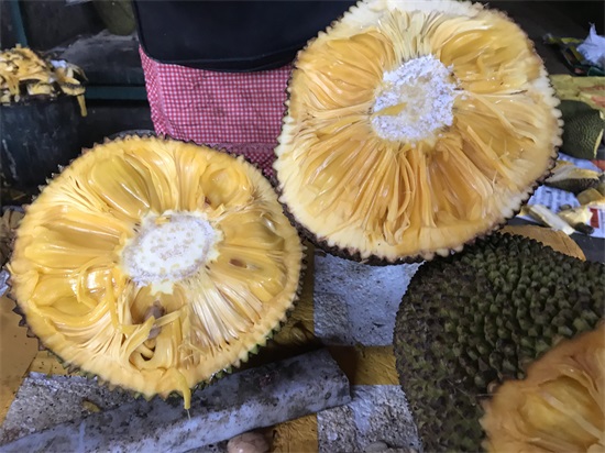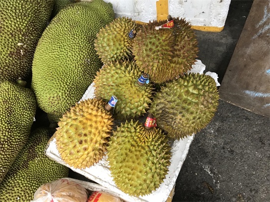 在这里不过是本地水果外地水果还是进口水果一应俱全。价格也不算太贵。这个季节榴莲大概15元一斤,熟了裂开的更便宜些。