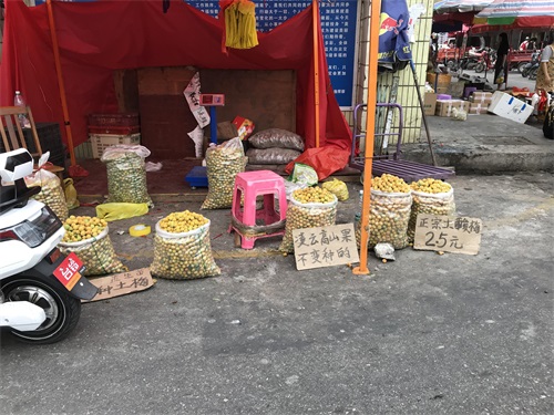 酸梅季节,很多人来这里买酸梅回去泡酒或者腌起来。土酸梅零售价2.5元一斤,广西老一辈的人几乎都会腌酸梅,家里都有一大罐腌好的酸梅,焖猪脚或者焖鲶鱼时候放几颗。小时候放点酱油放点白糖再放点辣椒,一颗酸梅就能送一大碗白粥。