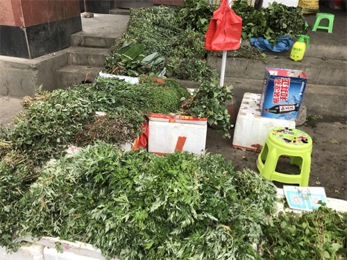 清明前后,还有卖艾草和做五色糯米饭的燃料植物的,两三块钱一大把,非常便宜。