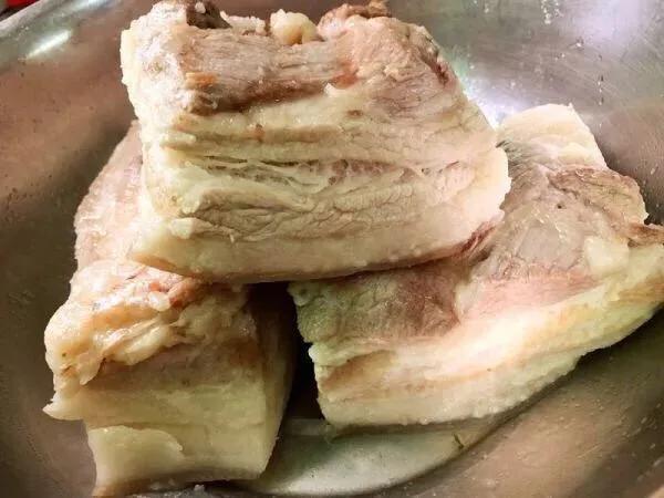 第二步,将五花肉洗净后,下入水中煮,直至筷子能戳入皮中!