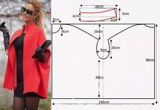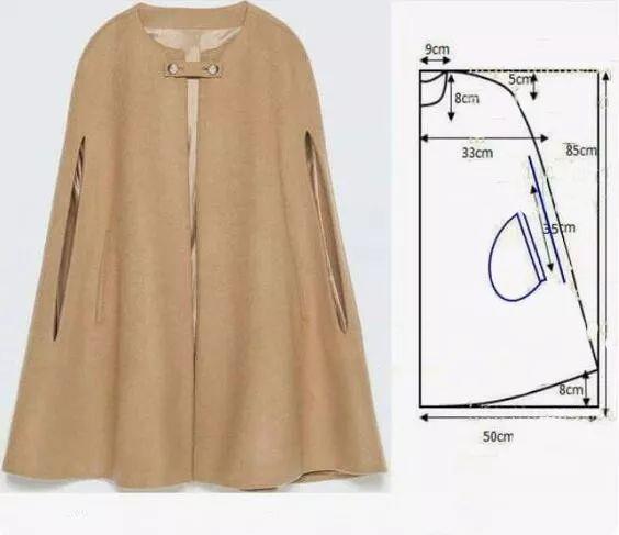以下是分享给爱手工的朋友冬天的流行款风衣斗篷图纸。