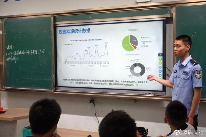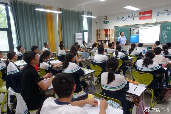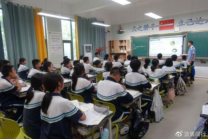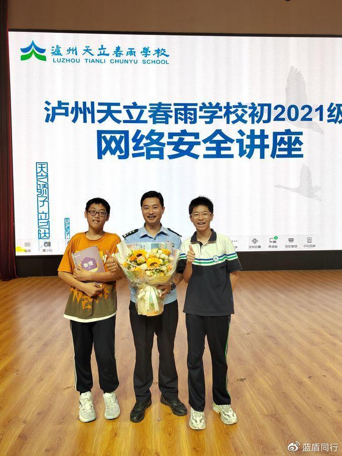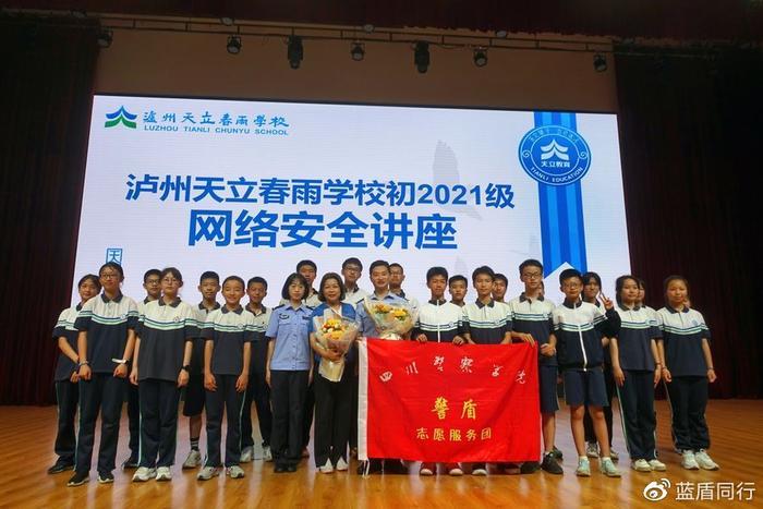法护未来,守望成长。六一节前,四川警察学院警盾志愿服务团30多名志愿者应邀走进泸州天立春雨学校,利用晚自习时间,合计为1077名学生送上了反校园欺凌和网络安全公益宣讲。