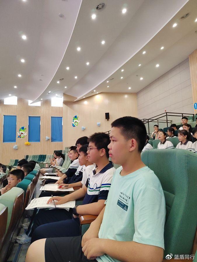 团长廖胜利老师宣讲的主题是《网络安全 从我做起》。为确保每个孩子都能学习到网络安全知识,校方把初二年级10个班合计500多名孩子安排在大教室,听廖胜利老师的讲座。剩余的15个班,则由志愿者一对一进班宣讲。