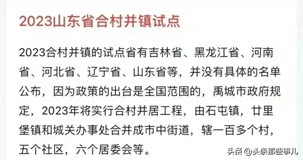 试点省份的这份名单,早在2020年就在网上流传,这与当时山东省正在轰轰烈烈搞的“合村并居”有关。毕竟早在2017年的《关于支持深度贫困地区脱贫攻坚的实施意见》中明确提出到2020年将会让三分之一以上的村庄实现异地扶贫搬迁。2019年的《关于统筹推进村庄规划工作的意见》也要求各地要科学对村庄分类 , 引导人口向乡镇所在地、产业发展集聚区集中。