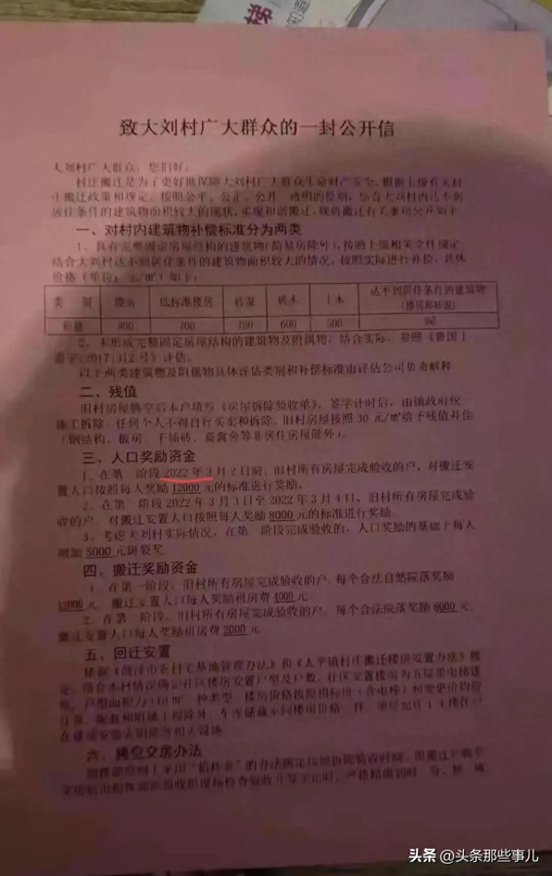 网传的某村“合村并镇”拆迁补偿通知