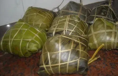 关于裹蒸的制作方法,肇庆这段顺口溜说得更加直白:"外包冬叶三几片,糯米绿豆放里边,肥肉芝麻作肉馅,裹好扎牢蒸半天"。