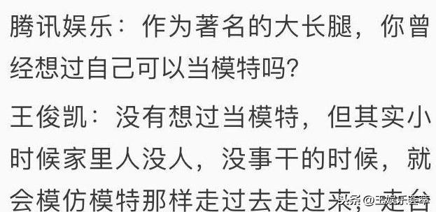 王俊凯的童年也跟很多人一样,喜欢做一些稀奇古怪的事情,比如记者问他有没有想过当模特,而他就想到了童年模仿模特的往事,他跟很多小朋友一样,会在父母不在家的时候模仿模特走路,那画面简直不敢想,没想到小凯小小年纪就对模特步感兴趣,难怪会在17岁的时候去米兰走秀,这都是小时候种下的种子啊。