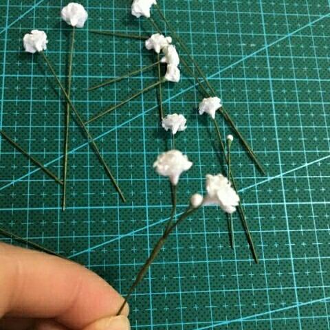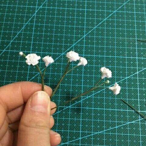 17.然后把满天星的纸艺花缠起来成为一小枝。