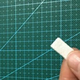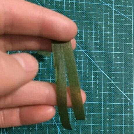 16.把绿色的胶带从中间剪开。