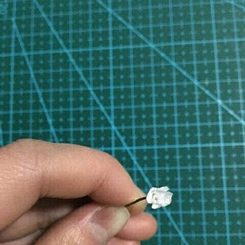 12.把花瓣上面涂上白乳胶,这样套到花茎上面。