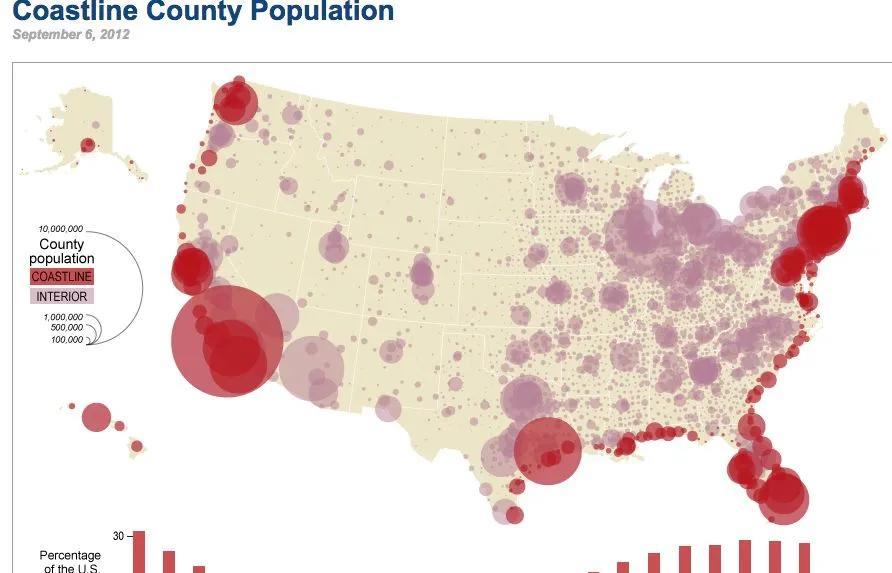 美国和中国一样,人口集中在沿海地区